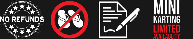 - All guests must complete a waiver before participating in Karting, Axe Throwing, Dart City, Time Mission or Mission Box.